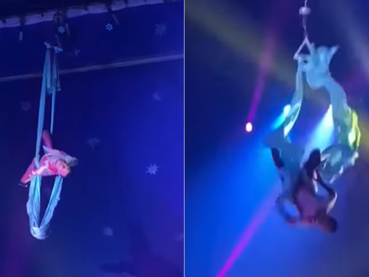 Acrobata de circo cai após cabo se romper em apresentação no CE