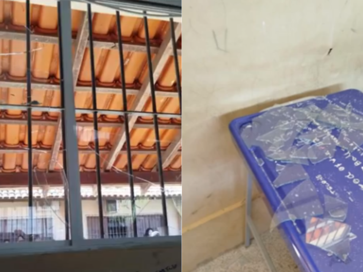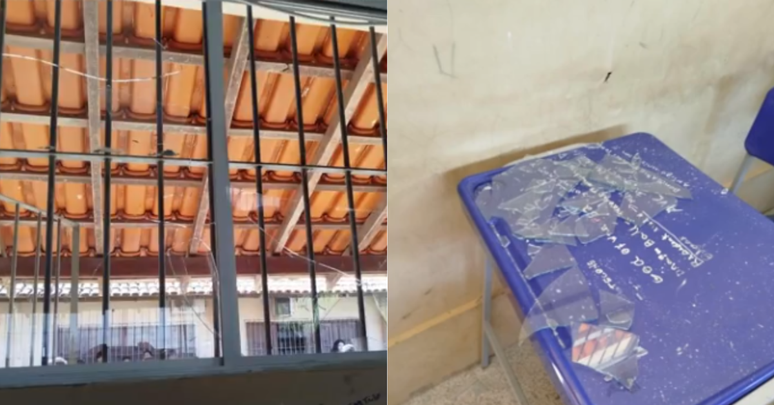 Com a explosão, o vidro quebrou e estilhaços foram para dentro da sala. Quatro estudantes foram atingidos e ficaram levemente feridos.