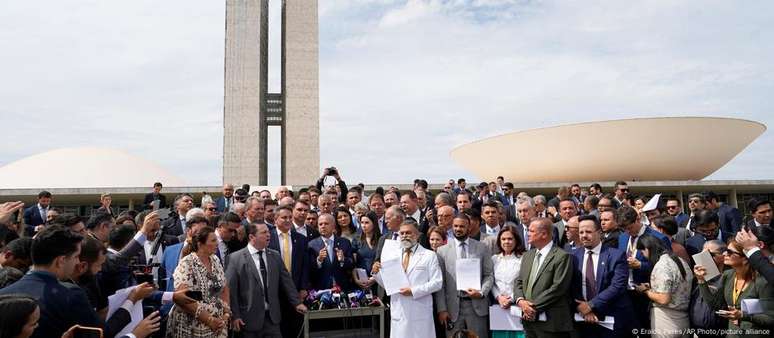 Parlamentares bolsonaristas reivindicam anistia para os condenados por tentativa de golpe de Estado, impeachment de Alexandre de Moraes e o fim do foro privilegiado. Presidentes de Senado e Câmara cancelaram sessões.Os presidentes da Câmara, Hugo Motta (Republicanos-PB) e, do Senado, Davi Alcolumbre (União-AP) cancelaram as sessões marcadas para ambas as casas legislativas nesta terça-feira (05/08), após parlamentares de oposição fazerem protesto e anunciarem a intenção de obstruir os trabalhos no Congresso em protesto contra a decretação da prisão domiciliar do ex-presidente Jair Bolsonaro.