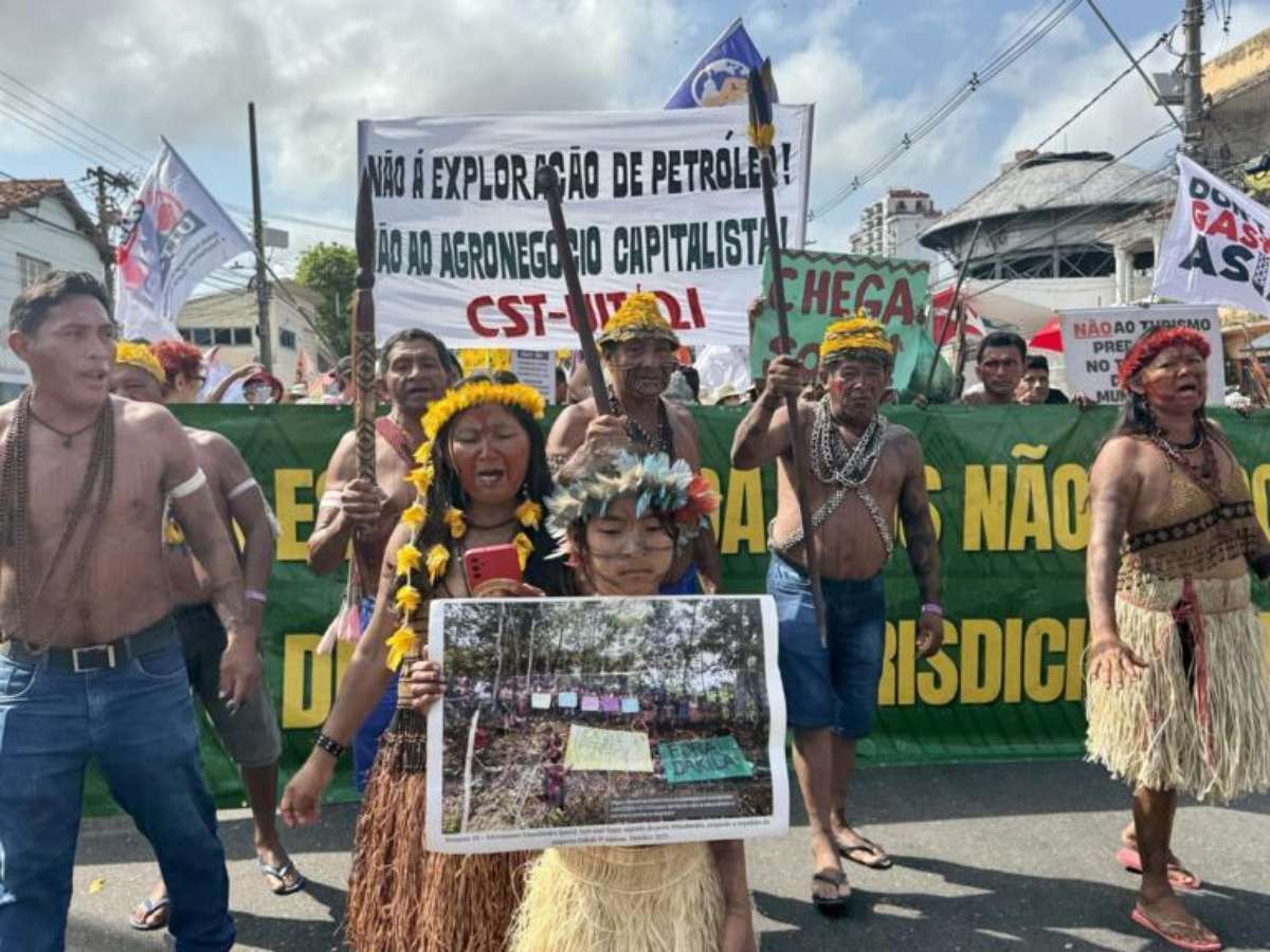 As populações amazônicas estão em peso no trajeto, reivindicando demarcação de terras indígenas, abandono de projetos como a exploração de petróleo na bacia da foz do Amazonas, a hidrovia no rio Tapajós e o Ferrogrão, ambos para facilitar a logística do agronegócio no meio da floresta. As ministras Marina Silva, do Meio Ambiente e Mudança do Clima, e Sonia Guajajara, dos Povos Indígenas, estavam presentes.