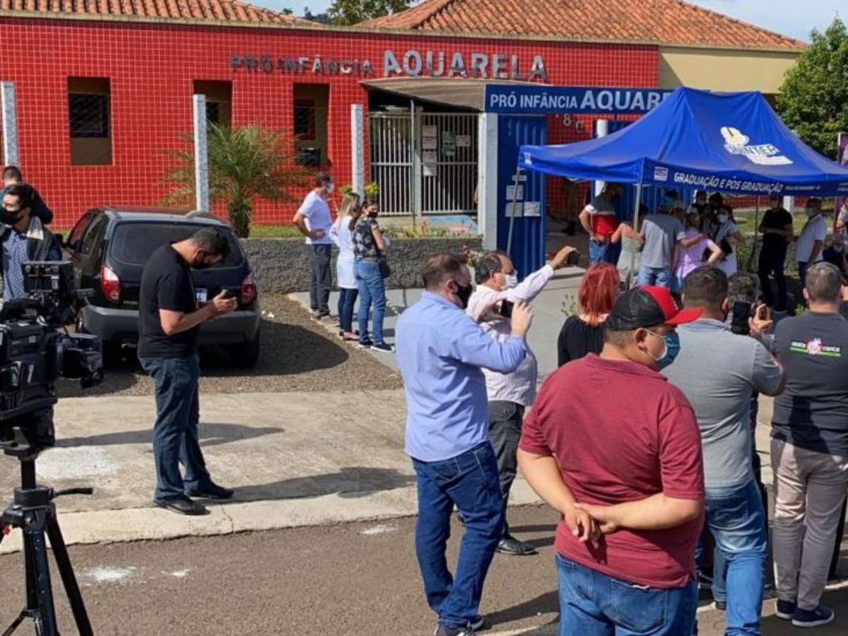 Homem de 18 anos invadiu escola de educação infantil na cidade de Saudades, atingiu seis pessoas com facão e depois feriu o próprio pescoço.