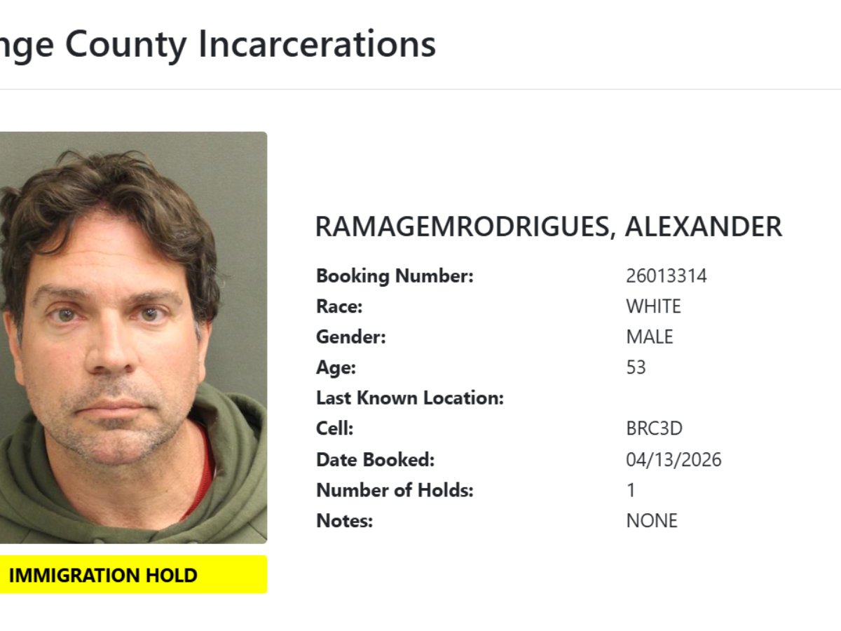 A imagem, com a descrição "immigrantion hold" (detenção por imigração), contradiz a versão de aliados de Ramagem, que diziam que ele teria sido preso uma infração de trânsito.