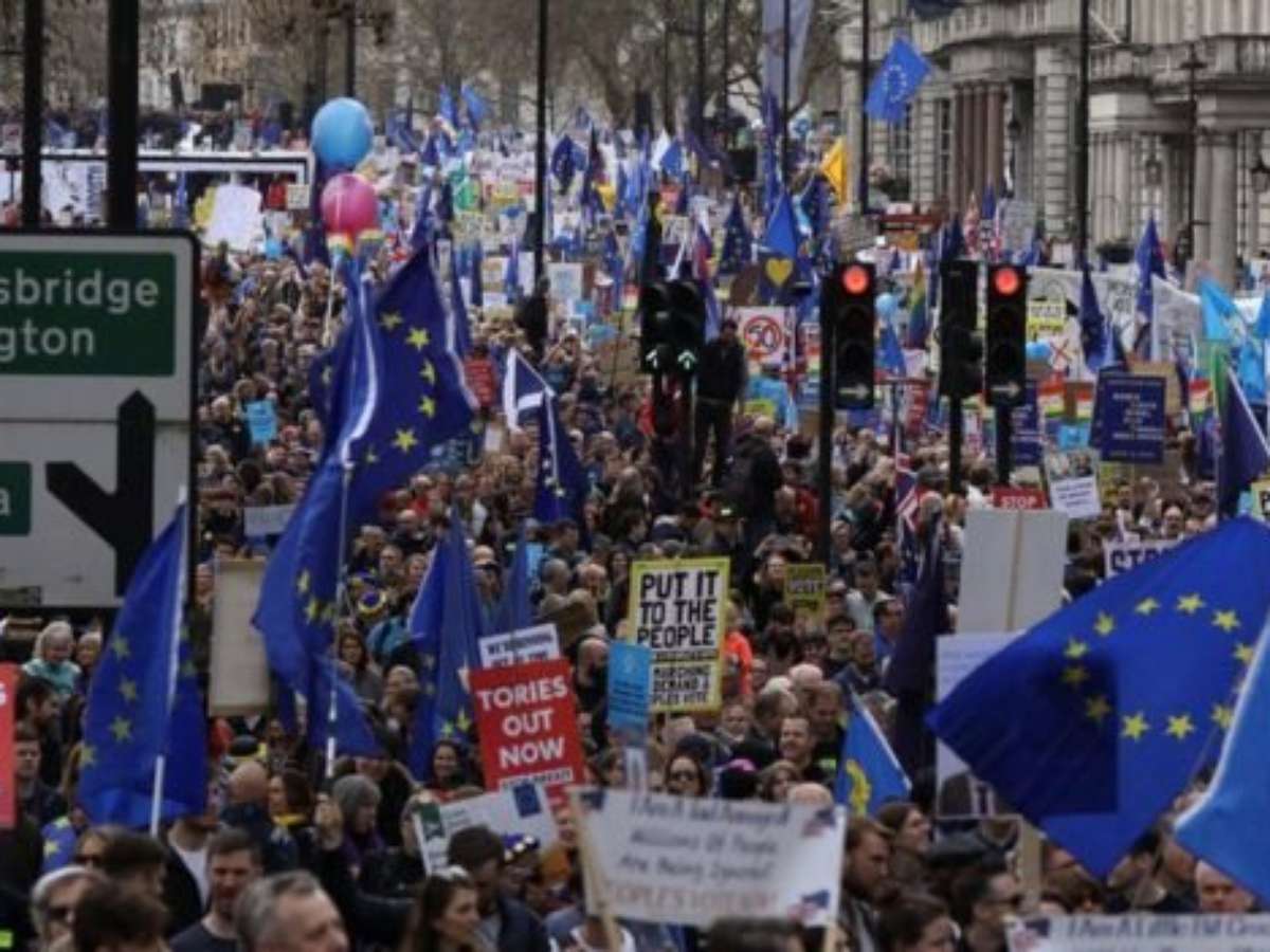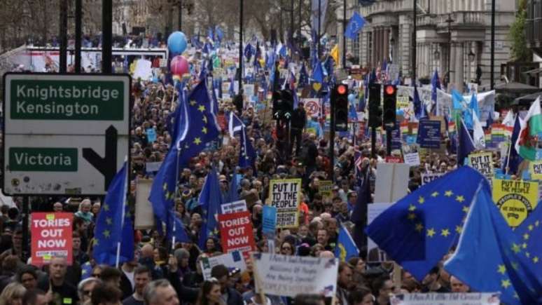 Cidade foi tomada por manifestação que pede por um segundo referendo sobre a saída do Reino Unido do bloco; prazo para definição sobre Brexit está acabando.