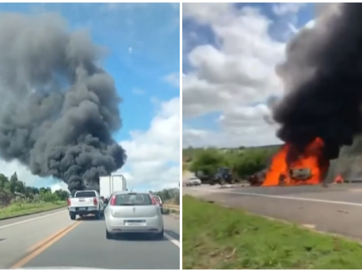 A colisão ocorreu após uma minivan invadir a contramão e atingir uma caminhonete, segundo a Polícia Rodoviária Federal (PRF) à TV Santa Cruz. Com o impacto, os dois veículos pegaram fogo.