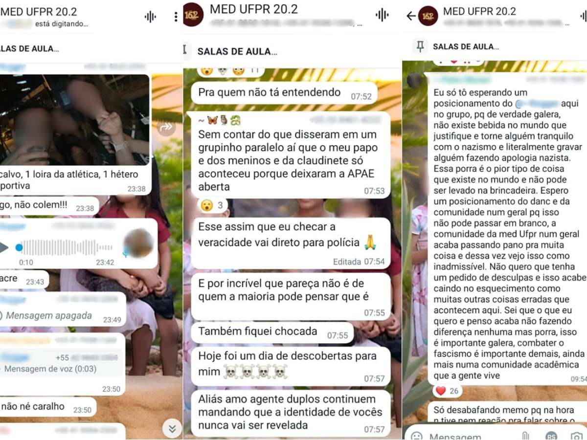 Um aluno veterano do curso de medicina da Universidade Federal do Paraná (UFPR) é acusado de apologia ao nazismo após enviar uma mensagem de áudio em um grupo no WhatsApp. O caso foi reportado nesta terça-feira (30) pelo Diretório Acadêmico Nilo Cairo em uma rede social.