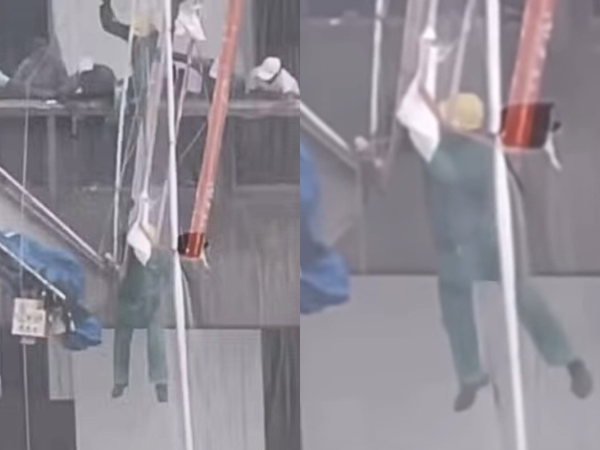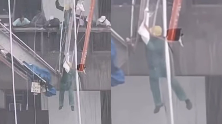 Andaime se solta e operário fica pendurado em fachada de prédio no Rio de Janeiro; veja vídeo