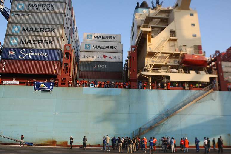 Após resistência, estivadores deixam navio e aguardam reunião em Santos