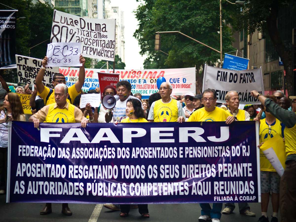 Aposentados e pensionistas fazem passeata no centro do RJ