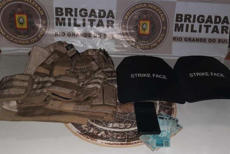 Durante a inspeção do veículo, os policiais descobriram a presença de dois coletes balísticos, além de uma capa de colete, juntamente com a quantia em dinheiro de R$ 887,00. Uma verificação mais detalhada revelou que o automóvel em questão possuía placas clonadas, sendo que sua origem remontava a um roubo ocorrido no mês de julho no município de Porto Alegre.