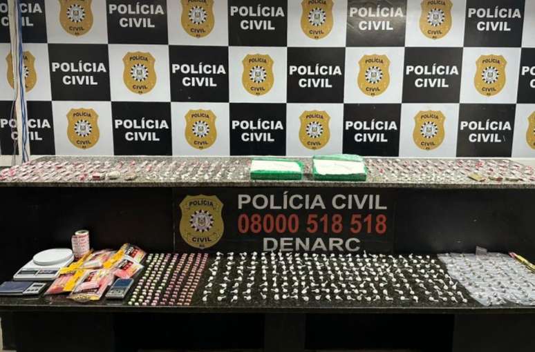 O material apreendido inclui dois tijolos de cocaína, 364 porções de cocaína, 208 porções de maconha, 87 porções de haxixe, além de três balanças de precisão e um automóvel empregado no transporte. A soma das apreensões será registrada oficialmente e encaminhada para análise pericial.