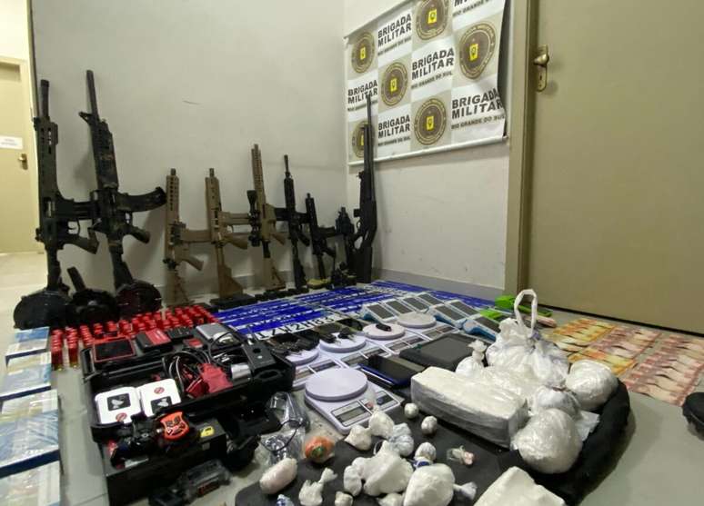 A investigação conduziu os policiais do 3º BPChoque até uma casa onde estavam escondidos seis tipos de armas longas, entre eles um fuzil 7.62 mm, quatro fuzis 5.56 mm e espingardas calibre 12. Foram apreendidos também diversos carregadores e mais de 280 munições.