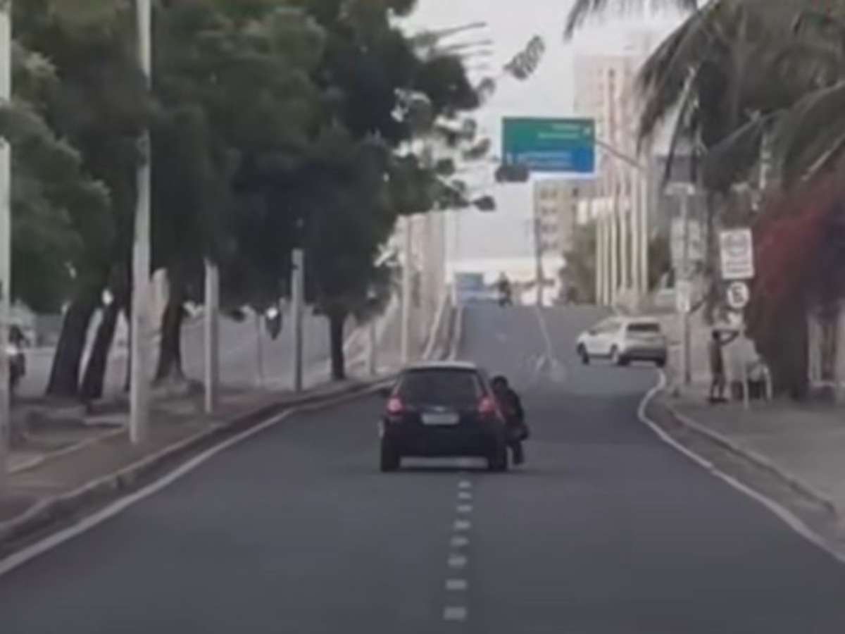 Assaltante preso em porta de carro é arrastado por ruas de Fortaleza