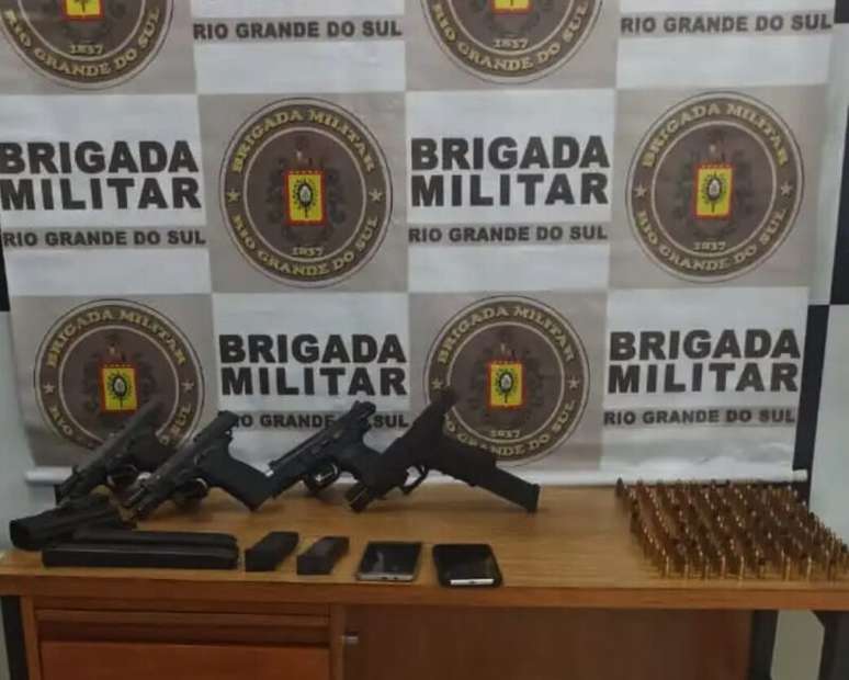 Durante a detenção, foram apreendidas três pistolas calibre 9mm, seis carregadores com dezessete munições cada, além de dois carregadores prolongados, totalizando 149 munições do mesmo calibre. Também foram encontrados um veículo VW Polo branco, reportado como roubado, sete pares de luvas pretas e dois celulares.