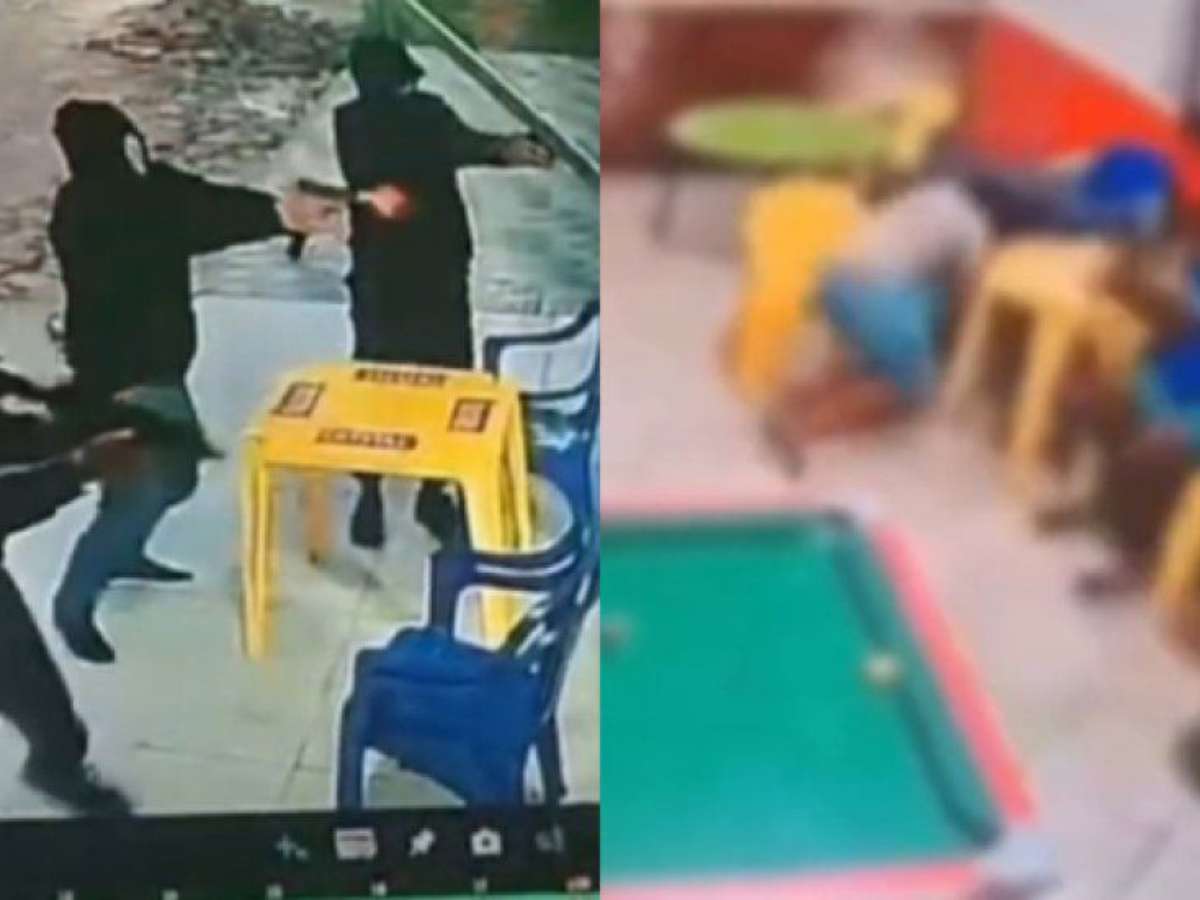 Nas imagens que circulam nas redes sociais é possível ver o desespero das pessoas que estavam no estabelecimento, quando os três homens encapuzados entram no local e começam a atirar.