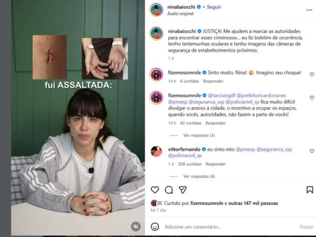 A atriz e influenciadora Carolinna Baiocchi de Oliveira Carneiro, conhecida como Nina Baiocchi, foi assaltada no centro de São Paulo, conforme relato em vídeo postado por ela nas redes sociais na última quinta-feira, 15.