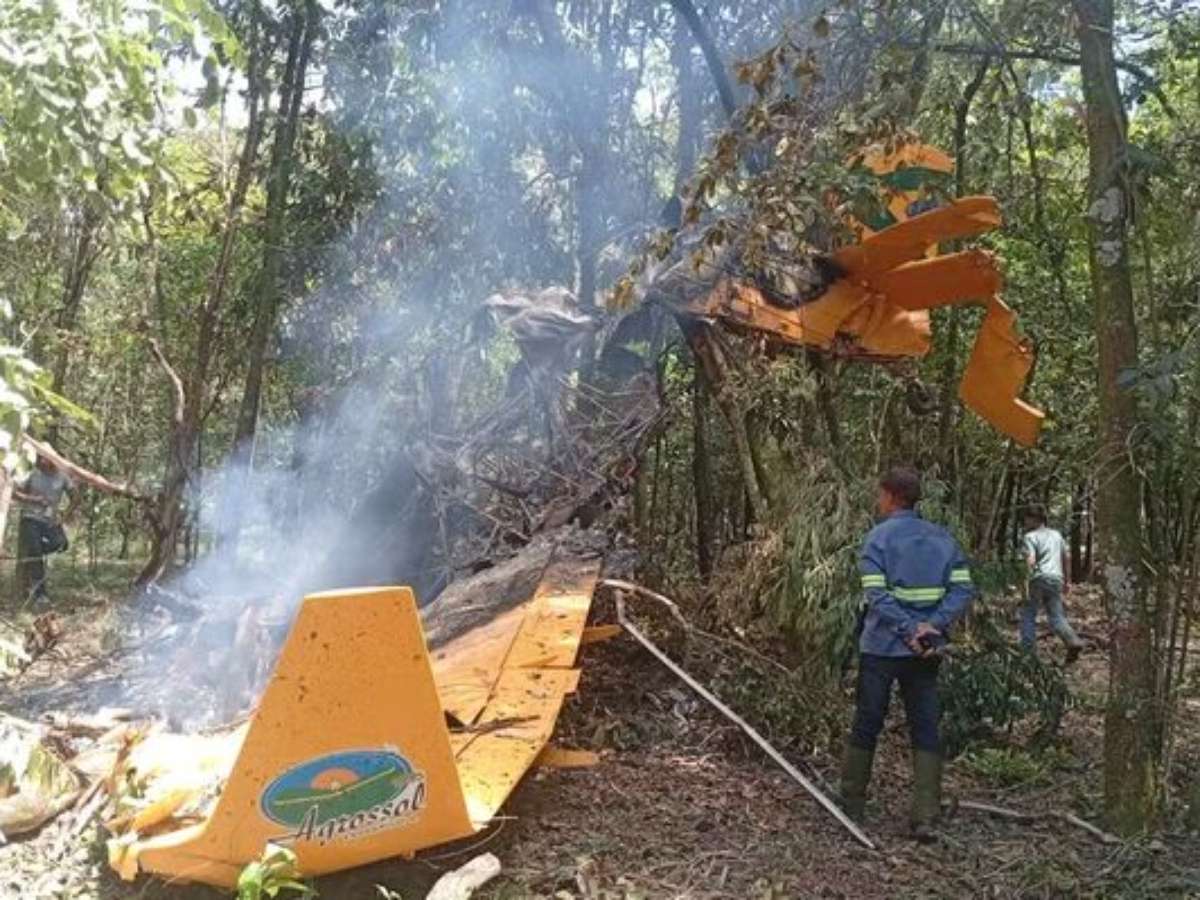A aeronave, utilizada para pulverização de agrotóxicos, bateu em árvores antes de cair perto de uma estrada municipal. O local do acidente foi isolado para o trabalho da perícia.
