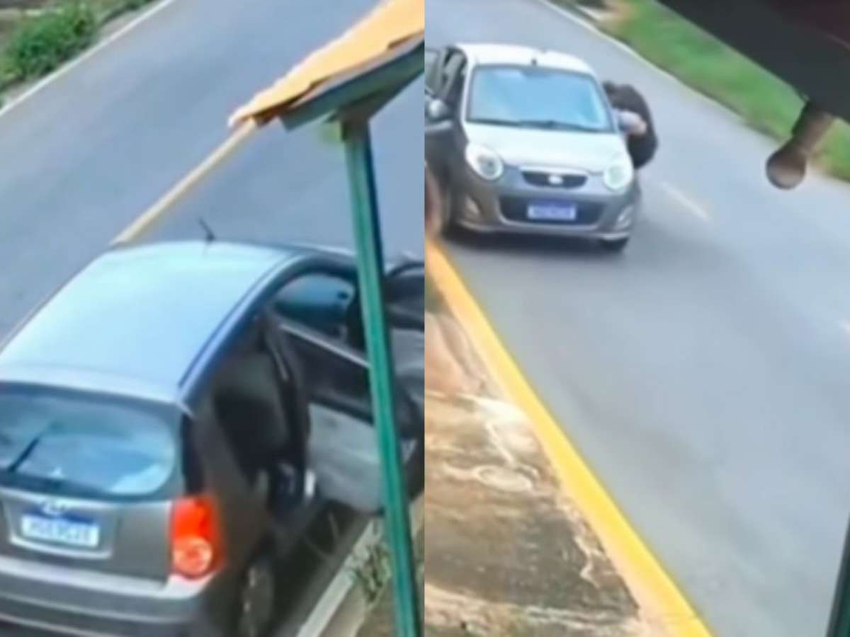 Câmeras de segurança registraram o momento e as imagens viralizaram nas redes sociais. No registro, é possível ver o barbeiro correndo para alcançar o carro, que descia uma inclinação de ré.