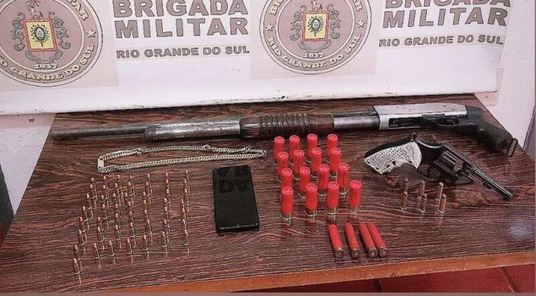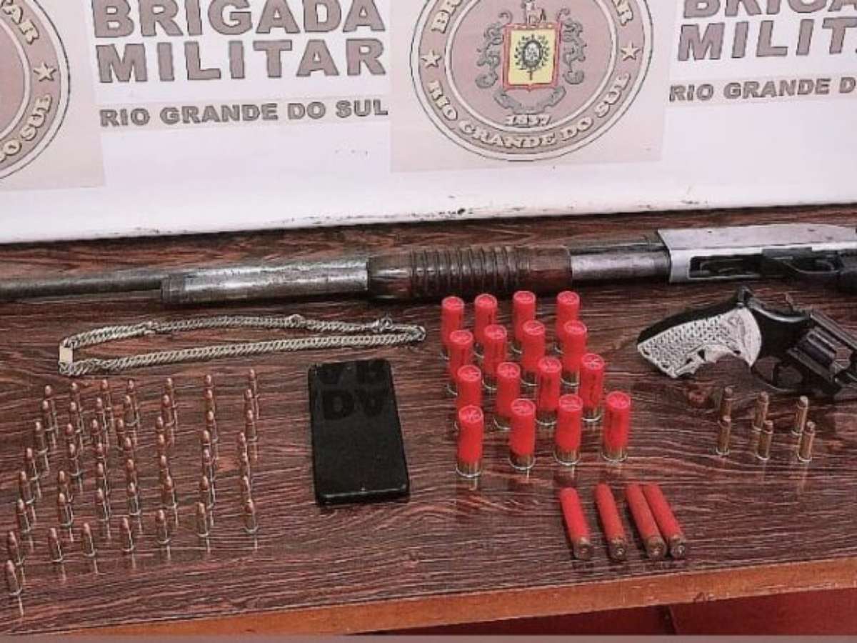 A guarnição da BM, com apoio de Santo Ângelo e da agência regional de inteligência, chegou ao local e avistou um homem de 31 anos, que tentou fugir para os fundos da residência com uma arma de fogo longa. Ele foi abordado e encontrado com uma espingarda calibre 12mm, municiada. Na residência, também estava uma mulher de 19 anos, armada com um revólver calibre 38. Uma vasta quantidade de munição de diversos calibres foi encontrada no quarto.