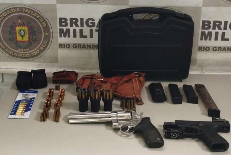 Durante a revista pessoal, foi encontrada uma pistola calibre .380 com 15 munições em sua cintura, além de um carregador em seu bolso. Na residência, também foram descobertos um revólver calibre .38, três jet loaders e 28 munições.