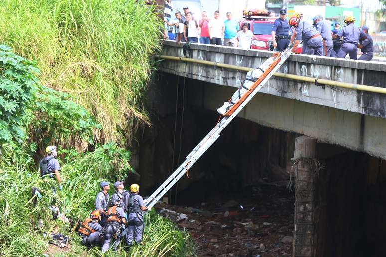 Equipes de resgate do Corpo de Bombeiros encontram um corpo nesta terça-feira (16) na avenida Guido Aliberti com a avenida do Estado, em São Caetano do Sul, na Grande São Paulo. De acordo com a corporação, a vítima pode ser Amadeu Gomes de Moura, que foi levado pela enxurrada provocada pela tempestade de ontem.