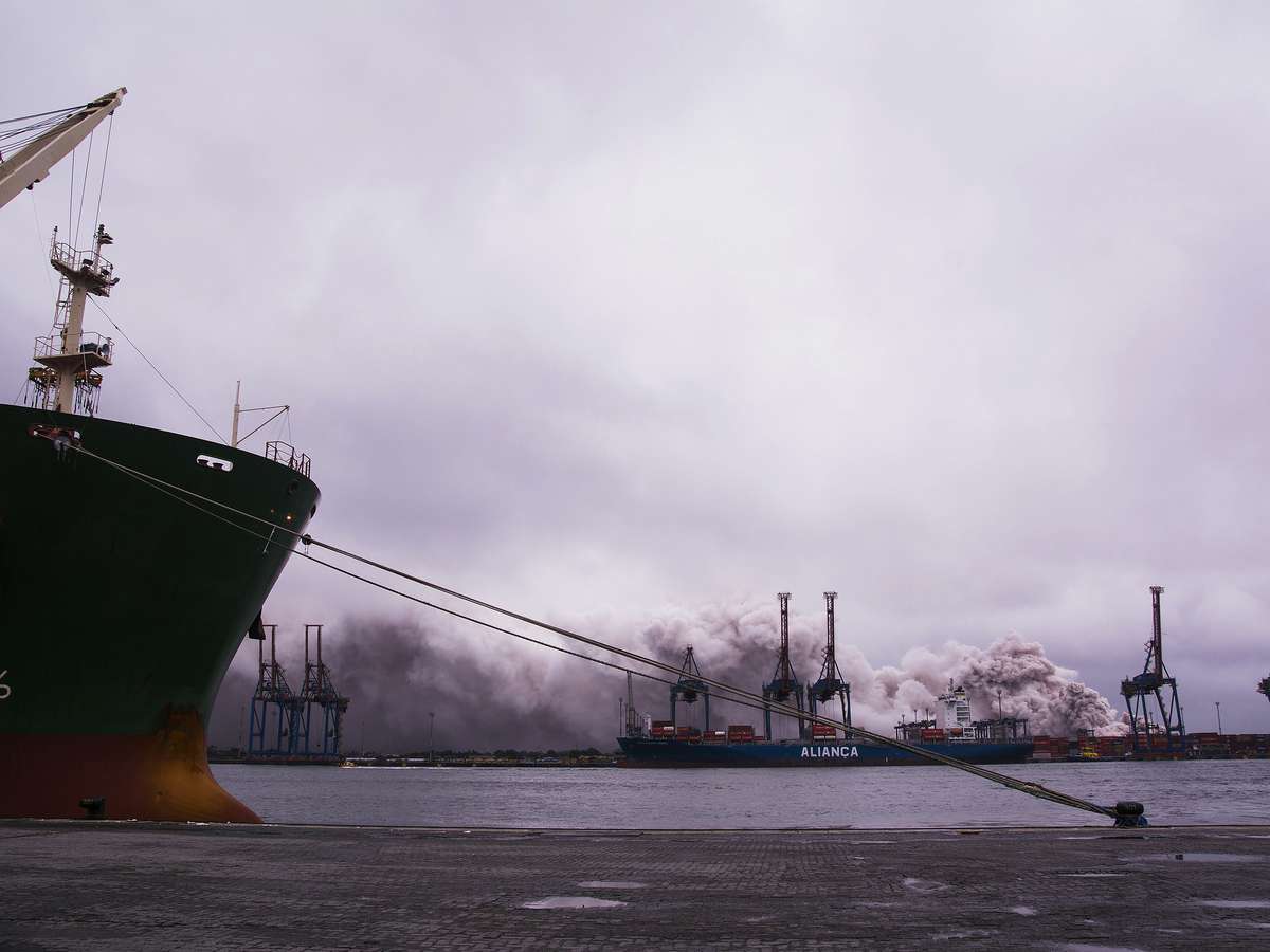 Apesar do fogo, o risco de propagação do incêndio é zero e os produtos não devem contaminar o estuário, que fica longe do local, afirmou o tenente. A expectativa, segundo ele, é de que até o fim do dia de hoje as chamas sejam apagadas e o trabalho entre em fase de rescaldo. “A maior dificuldade é retirar os contêineres, estamos resfriando externamente, porém as chamas continuam internamente. Usamos [para a extinção das chamas] água, espuma e pó químico”.