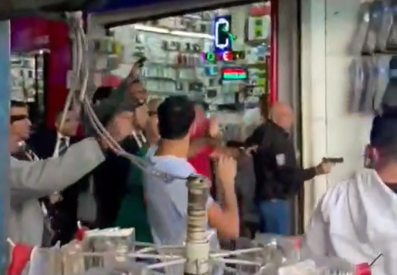 Circulam vídeos nas redes sociais que mostram o confronto; homens aparecem fazendo disparos de arma de fogo no meio do centro comercial