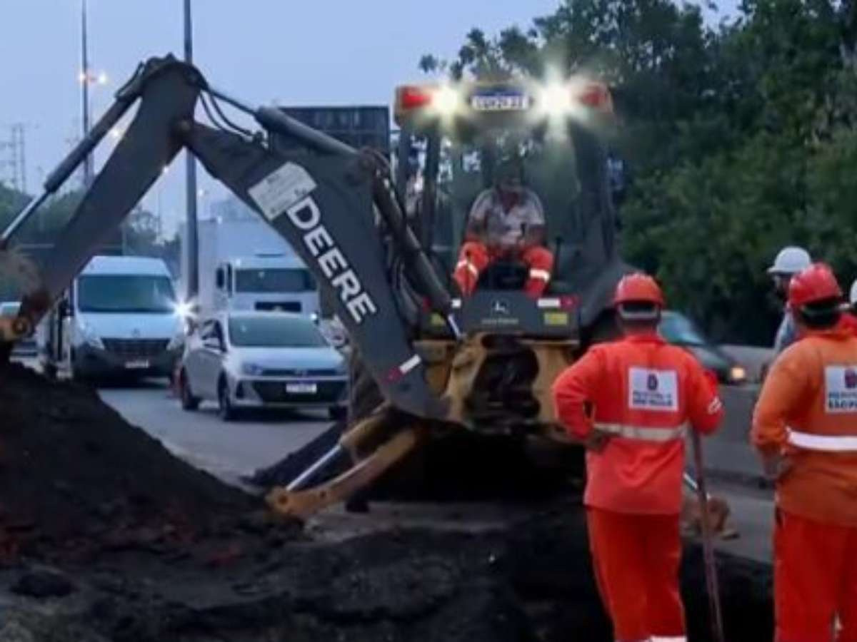 No início da tarde, equipes da Prefeitura de São Paulo chegaram a fazer alguns reparos, mas o asfalto cedeu novamente. Segundo gestão municipal, a nova previsão é de que os consertos na Marginal sejam finalizados na manhã deste sábado, 10, devido às chuvas.