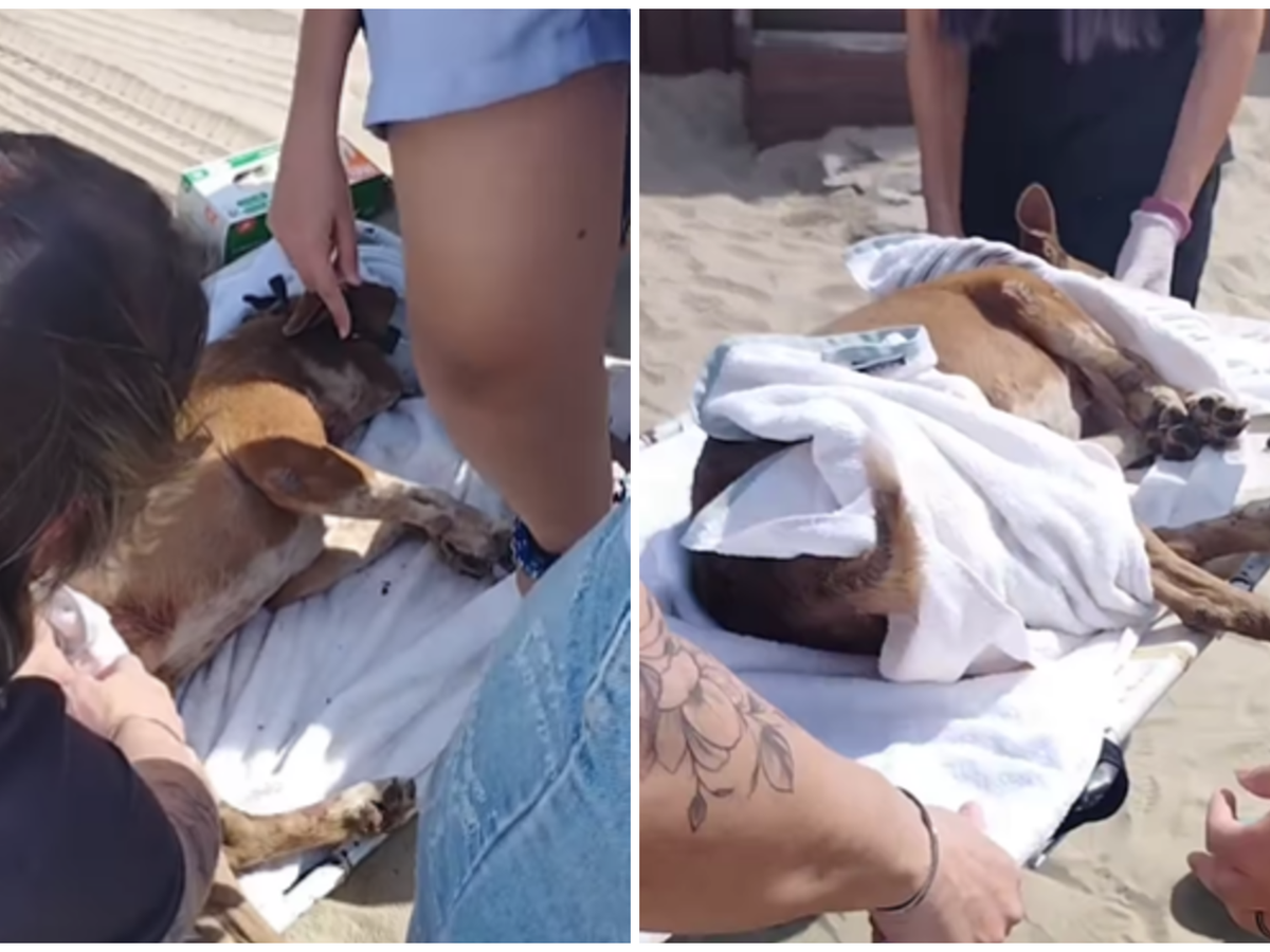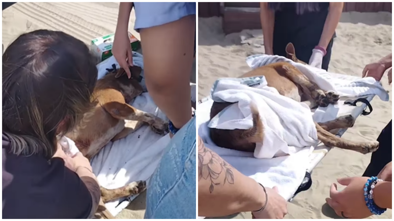 Cachorra comunitária é esfaqueada em praia no litoral de SP e passa por cirurgia