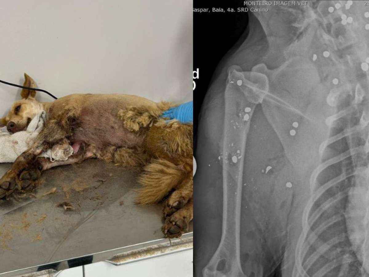 Ela foi encaminhada à clínica municipal, onde passou por exames, que constataram os projéteis espalhados pelo corpo dela. A cachorra passou por uma cirurgia de emergência e segue internada, recebendo os cuidados necessários.