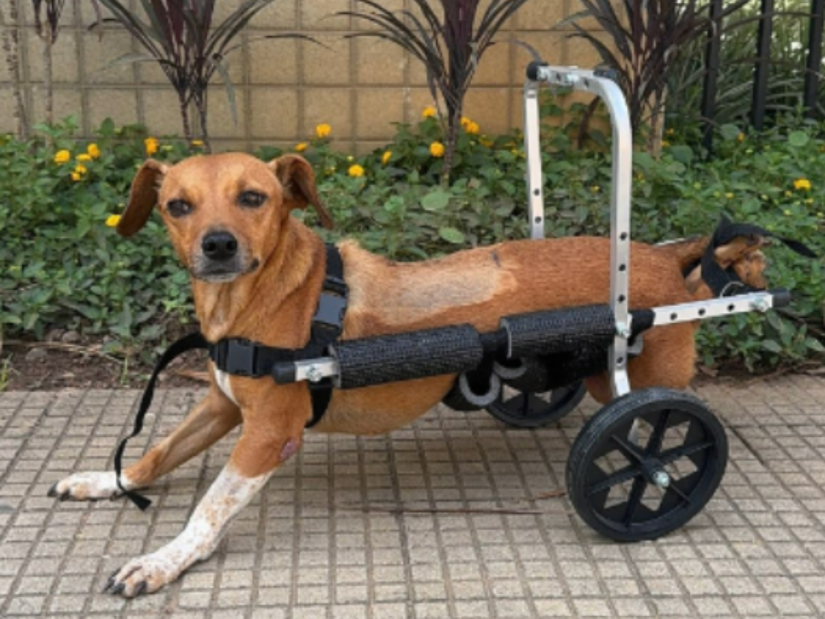 Cadela paraplégica é resgatada pela polícia durante enchentes em MG