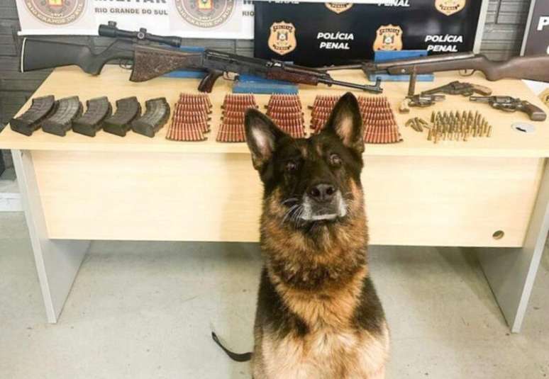 Dois cães farejadores da Polícia Penal, Nemo e Luck, foram essenciais para a apreensão de um arsenal escondido durante uma operação policial em Lajeado, na quinta-feira (27). A ação foi realizada em conjunto com a Polícia Civil e a Brigada Militar, visando o cumprimento de um mandado de busca e apreensão.