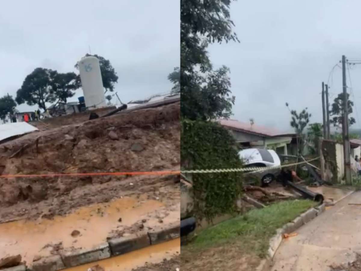 Imagens gravadas pelos bombeiros mostram partes da caixa no chão, além de muita lama por toda a rua. No vídeo, também é possível ver que um dos veículos invadiu uma residência, devido à força da água. Árvores e postes também ficaram danificados com o incidente.