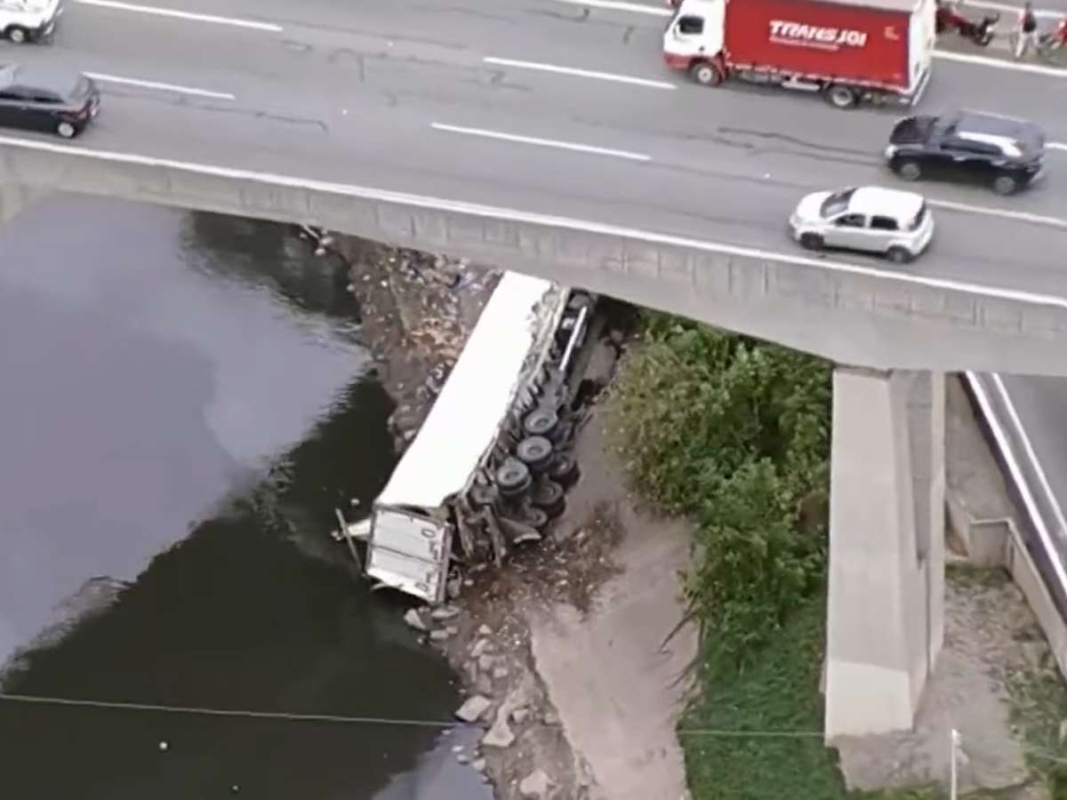 Caminhão cai de ponte na Marginal Tietê e deixa quatro feridos
