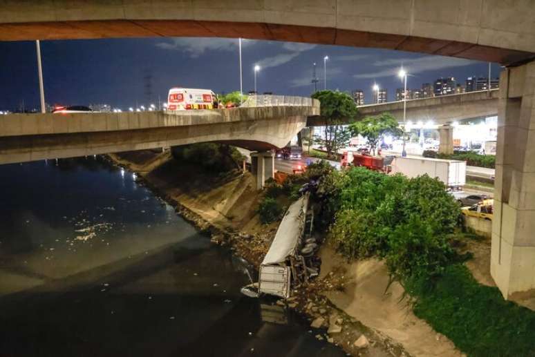 Um caminhão com quatro homens caiu da Ponte Atílio Fontana, na Marginal Tietê, zona norte de São Paulo, nesta quarta-feira, 5.