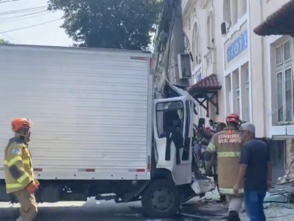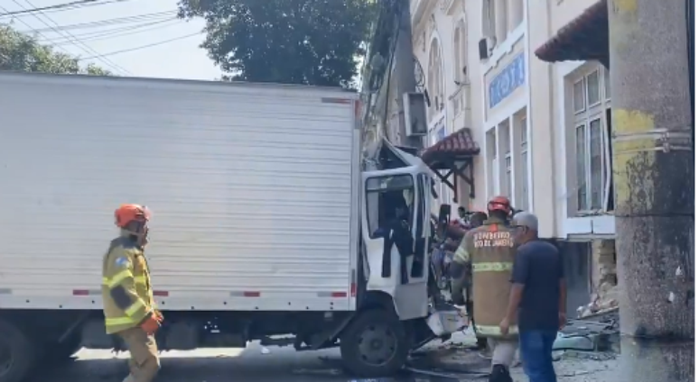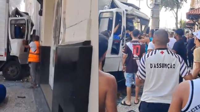 Caminhão desgovernado bate na fachada do estádio de São Januário e deixa três feridos