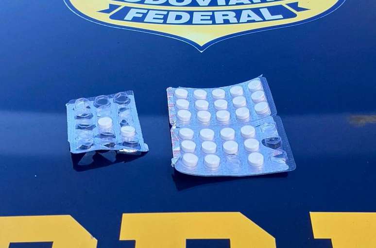 Os policiais abordaram um caminhão Scania, com placas de Guarapuava/PR, durante uma operação de fiscalização. Ao verificarem o cumprimento da Lei do Descanso, os agentes localizaram duas cartelas contendo 29 comprimidos de rebite no interior do veículo.