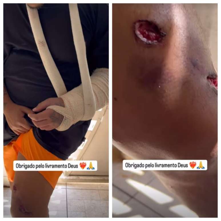"Muito obrigado a todos que mandaram mensagem, muito obrigado a todos que foram lá na porta do hospital, a todos que se 'manifestou', que não 'deixaram eu' ser forjado, que não deixaram as pessoas 'me enganar', colocar como culpado da situação. Mas eu só tenho agradecer a Deus mesmo, a minha família, as minhas crianças, a minha namorada, meus amigos, a todos, sem exceção", afirmou.