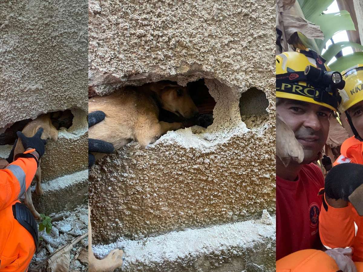 Cão é resgatado após ficar dois dias entre muros de casas no interior de MG