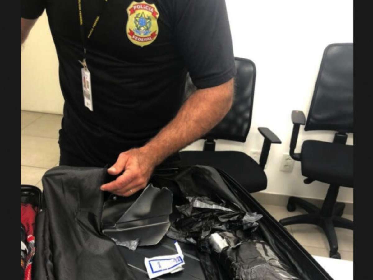 A apreensão aconteceu durante ações regulares de monitoramento no aeroporto, onde um cão farejador do Canil da PF identificou a substância ilícita escondida em um compartimento falso de uma mala despachada.