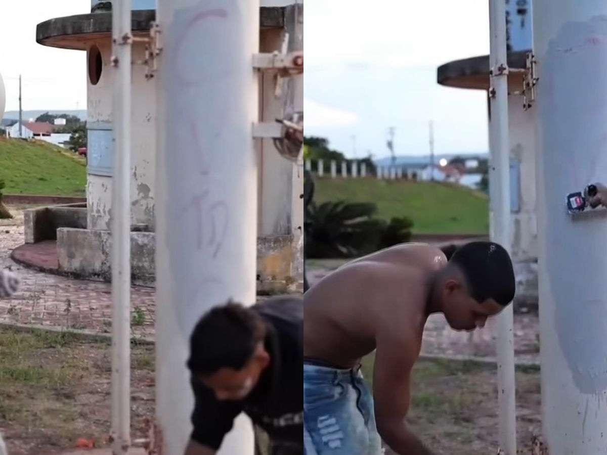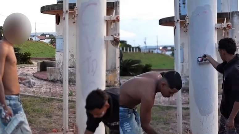 Capitão da PM faz membros de facção apagarem pichações com sigla do CV no Ceará