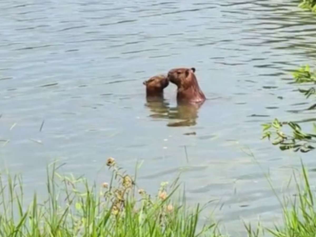 Capivara são flagradas ‘namorando’ dentro de lago no Rio de Janeiro