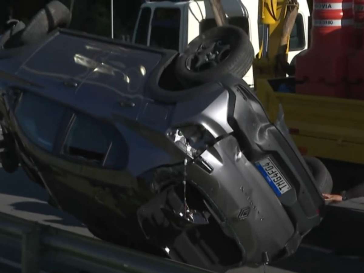 Pouco antes da 7h, um carro bateu em um poste e capotou no canteiro entre a pista local e central da marginal. Cinco viaturas do Corpo de Bombeiros foram enviadas para o local.