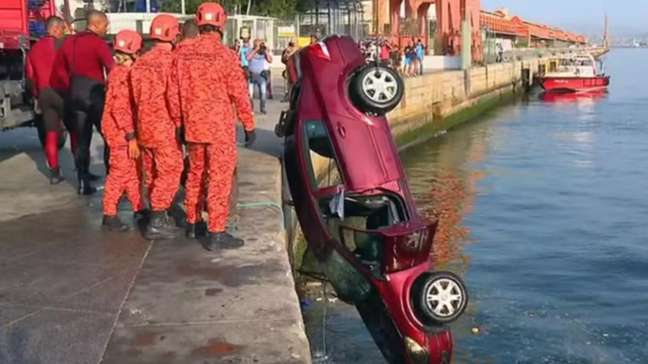 Testemunhas disseram à TV Globo que, dentro do carro, estaria um vendedor de 62 anos. O homem é conhecido na região por vender cocos e bebidas. Ainda não há informações sobre como o veículo foi parar na água.