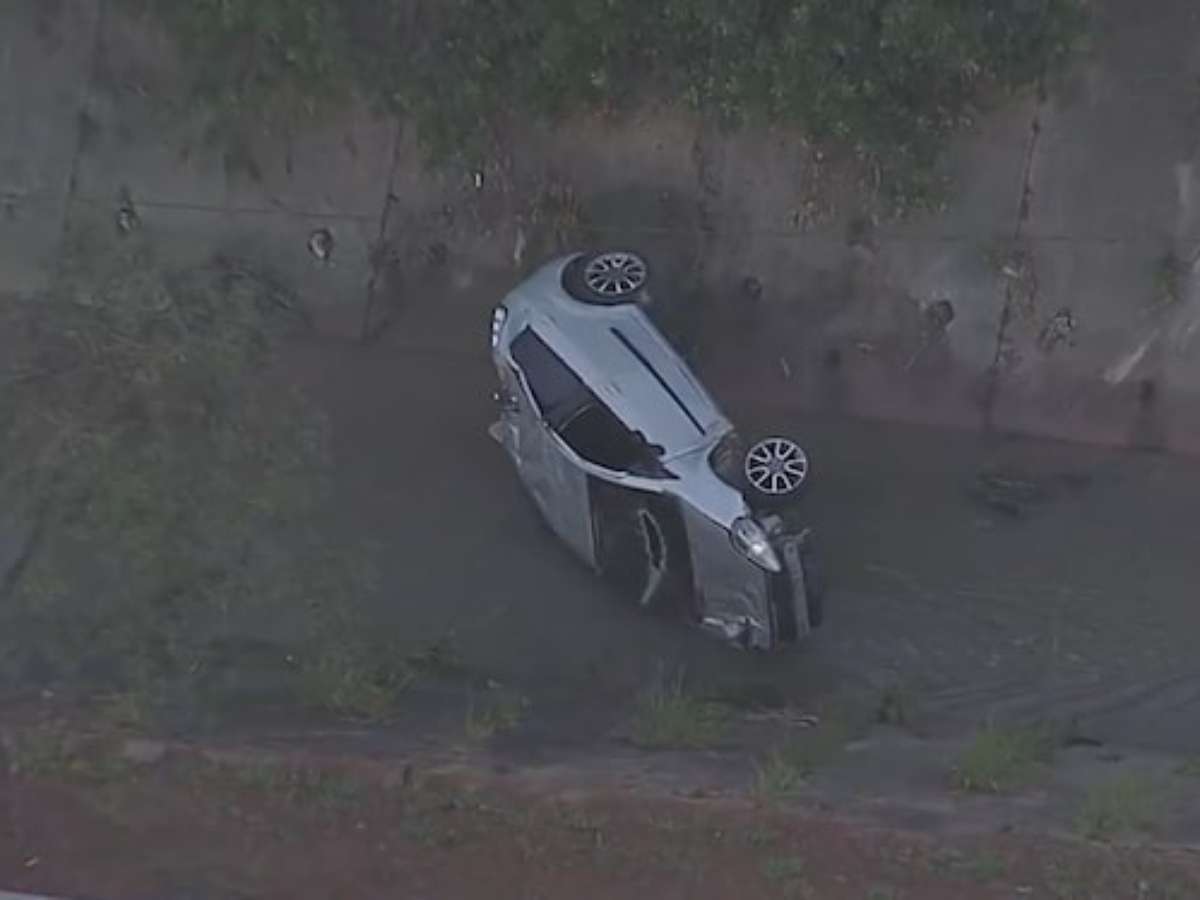 Carro capota, cai em córrego na Avenida Jacu-Pêssego e deixa jovem de 19 anos ferido