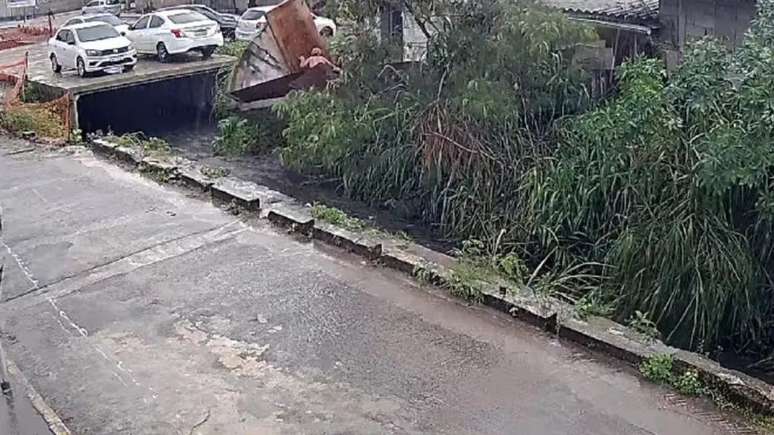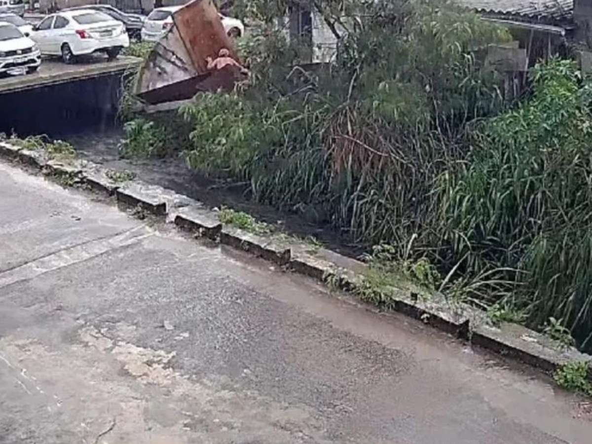 Em Duque de Caxias, na Baixada Fluminense (RJ), parte da casa de uma idosa desabou sobre um canal na manhã desta quinta-feira (26), após uma tempestade intensa que atingiu a região do Grande Rio. A vítima caiu na água junto aos escombros, e foi levada pela correnteza.