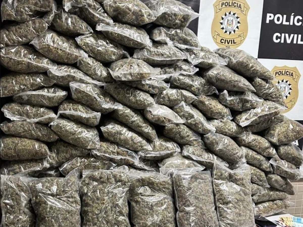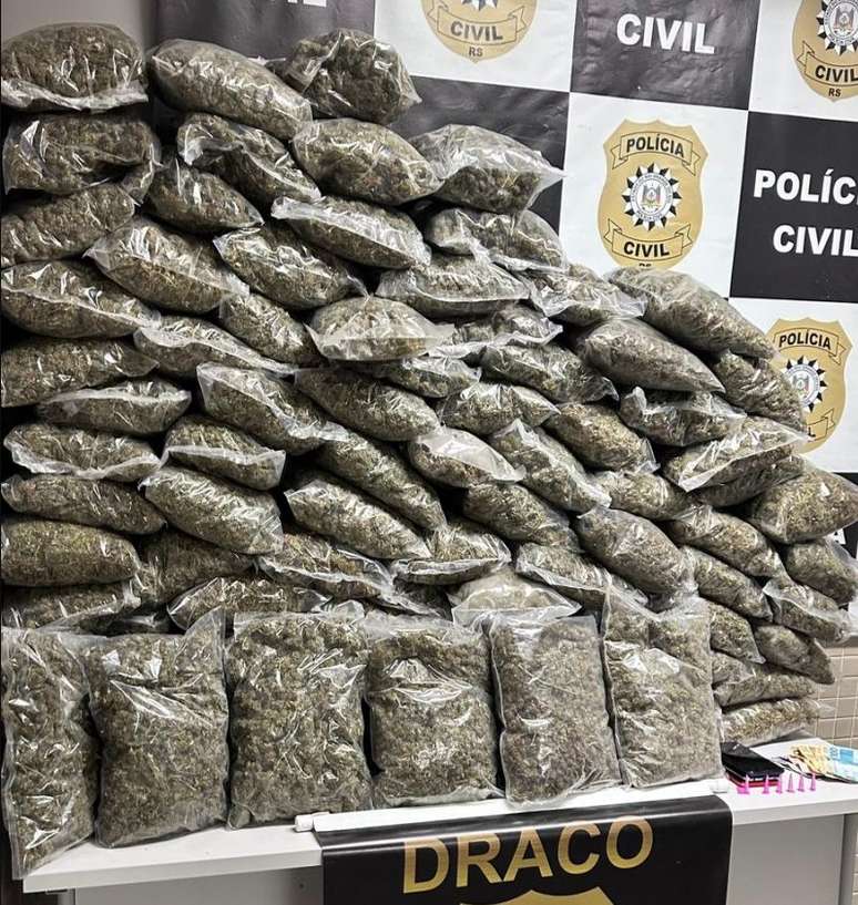 Na quarta-feira (19), a Polícia Civil apreendeu 46 kg de skunk em Rio Grande. A droga, avaliada em mais de R$ 1 milhão, estava sendo transportada por um casal que foi preso em flagrante por tráfico e associação para o tráfico.