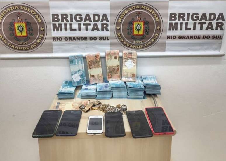 Notas de R$ 50 e R$ 100 estavam escondidas em caixa dentro de veículo abordado pela Brigada Militar