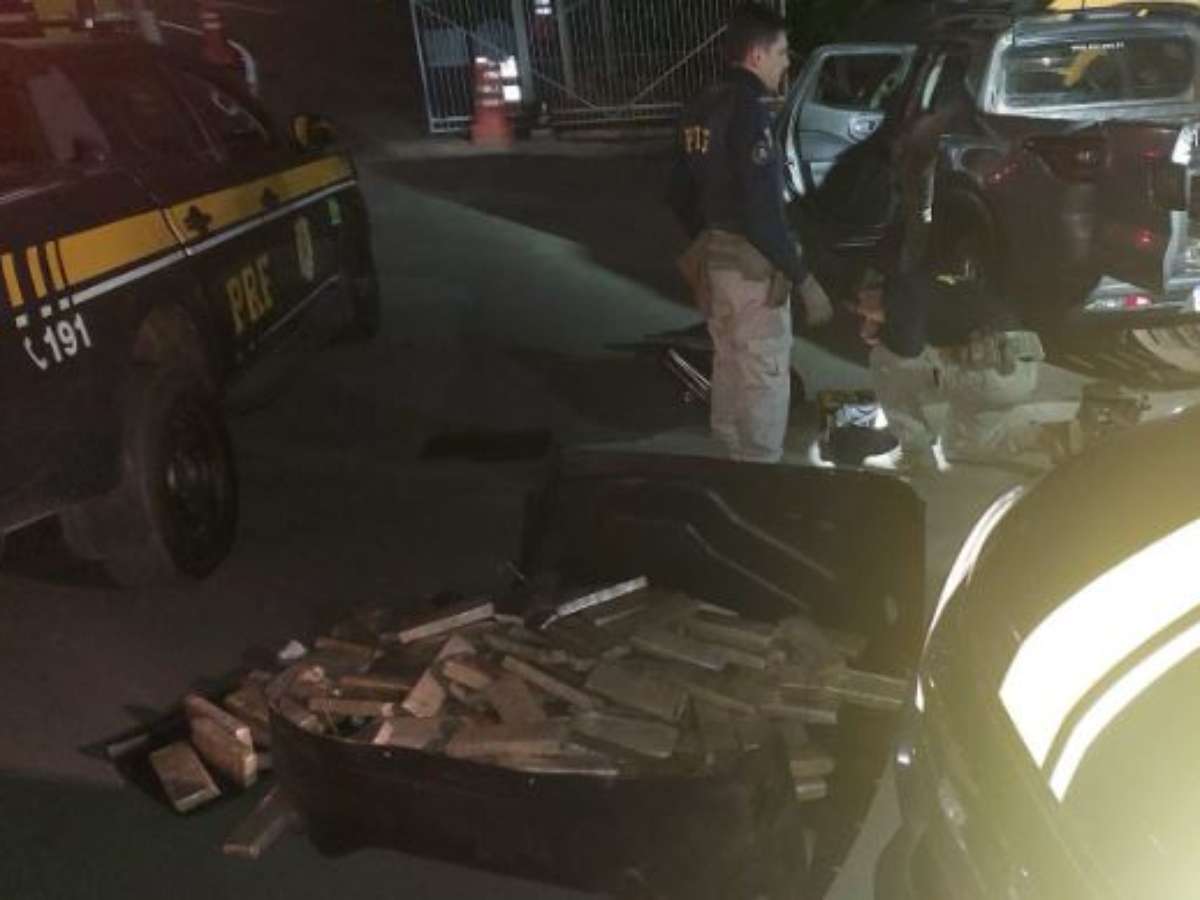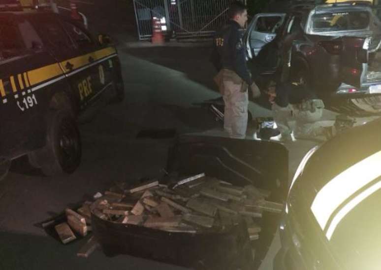 Com o apoio de cães farejadores, os agentes realizaram uma revista no veículo e os animais indicaram a presença de entorpecentes. Ao desmontarem o assoalho da caminhonete, os policiais encontraram um fundo falso onde estavam escondidos os 100 quilos de maconha.