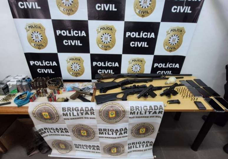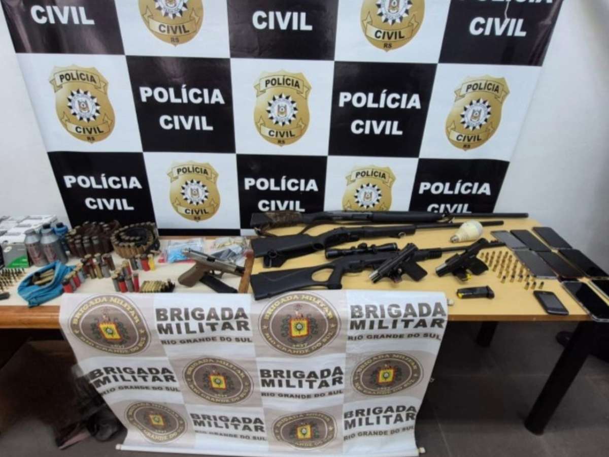 Foram apreendidas três pistolas, três espingardas, munição, porções de cocaína e maconha, além de um veículo usado na distribuição de entorpecentes. A operação contou com a participação da Delegacia de Polícia de Guaíba, Departamento de Polícia do Interior (DPI), Coordenadoria de Recursos Especiais (Core), Departamento de Aviação (Dav) e Departamento de Investigações do Narcotráfico (Denarc).