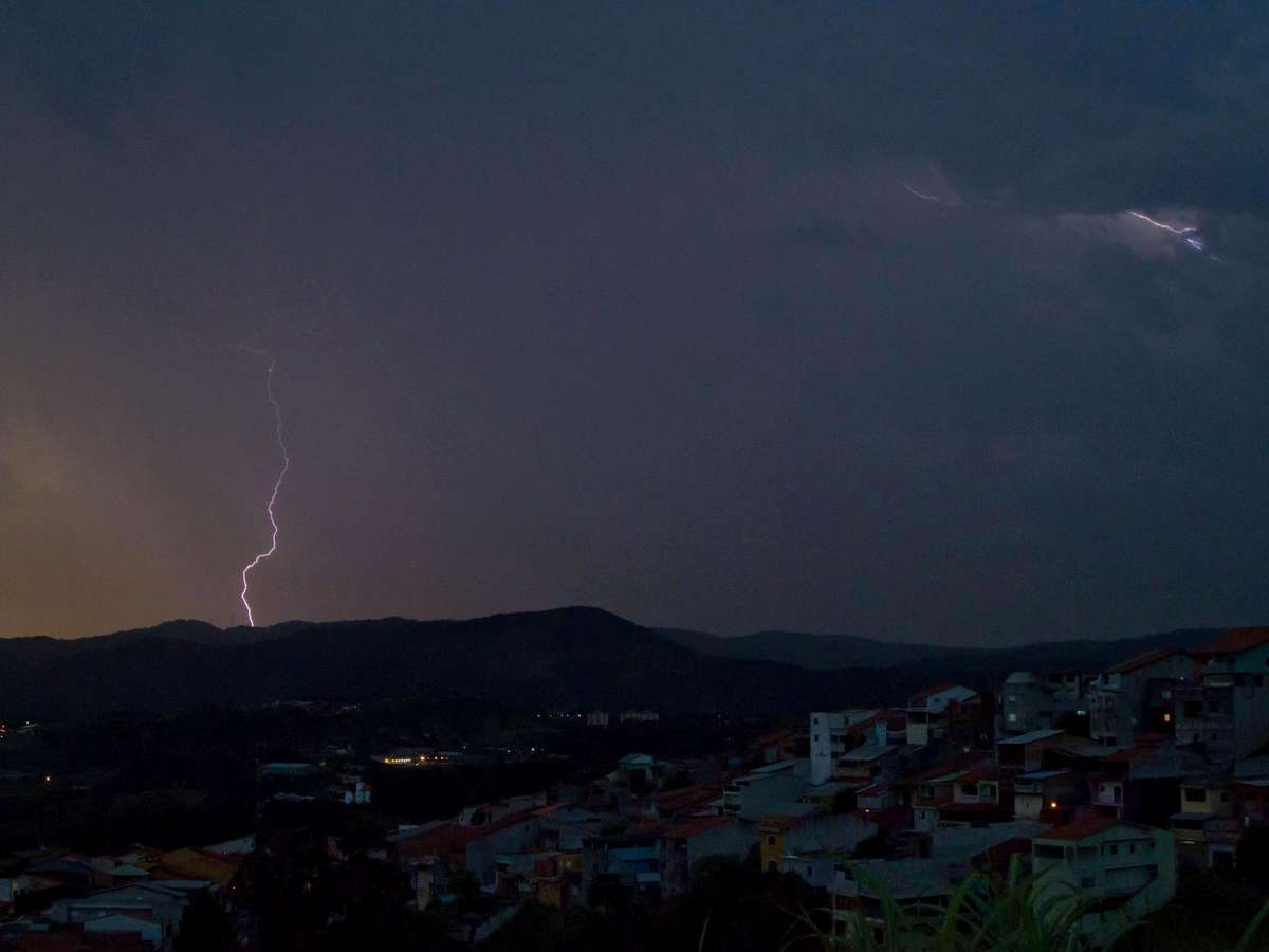 22 de janeiro - Raios são fotografados no céu da zona oeste da cidade, na região do bairro Rio Pequeno e da cidade de Osasco, na Região Metropolitana